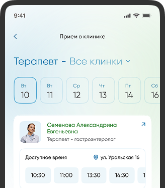 Выберите нужного врача и время, оплатите прием удобным способом.